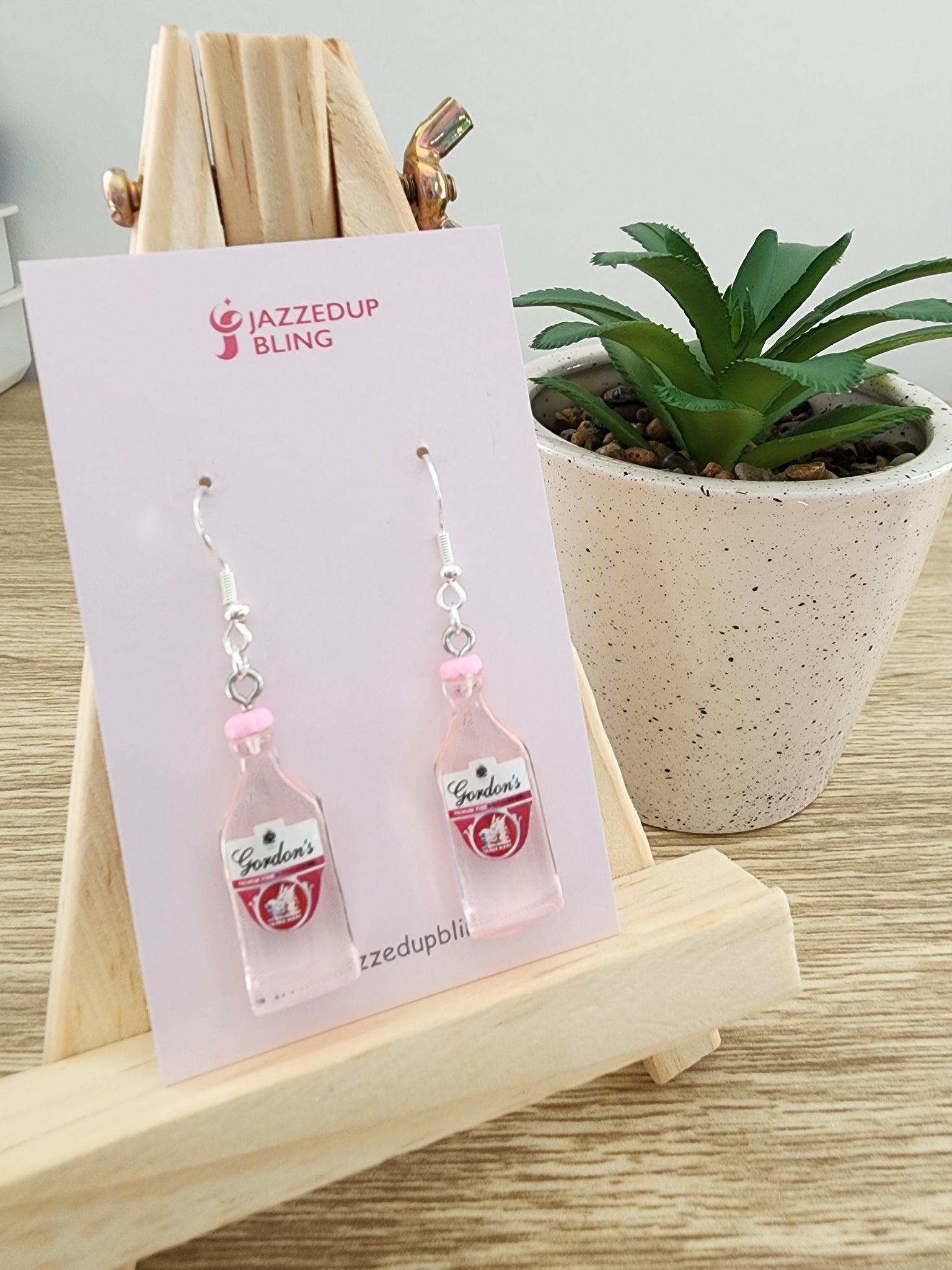 Final clearance – Pink Gin Bottle resin dangle earrings, lightweight and affordable.