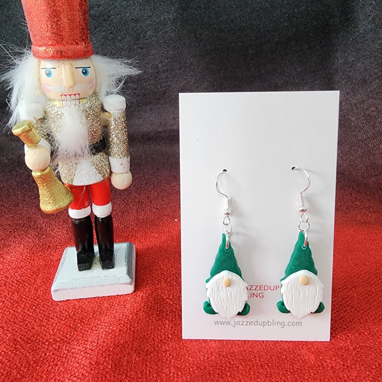 Celebrate the holidays with these handmade Christmas Gnome Earrings. Available in festive red or green hats, each gnome is carefully crafted from polymer clay and finished with your choice of classic hooks or sterling silver hooks for sensitive ears. Lightweight, whimsical, and full of Christmas cheer – the perfect festive accessory or stocking stuffer.