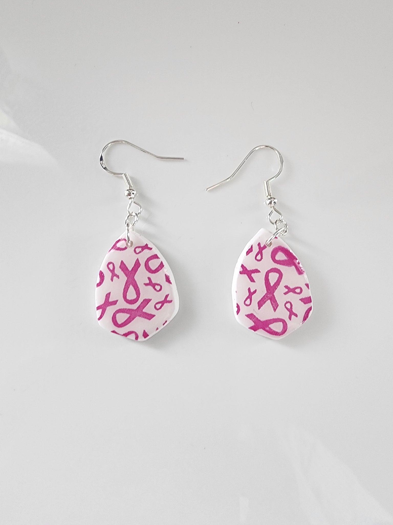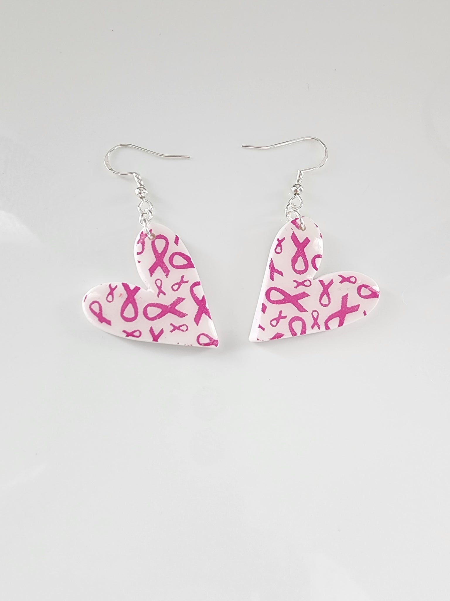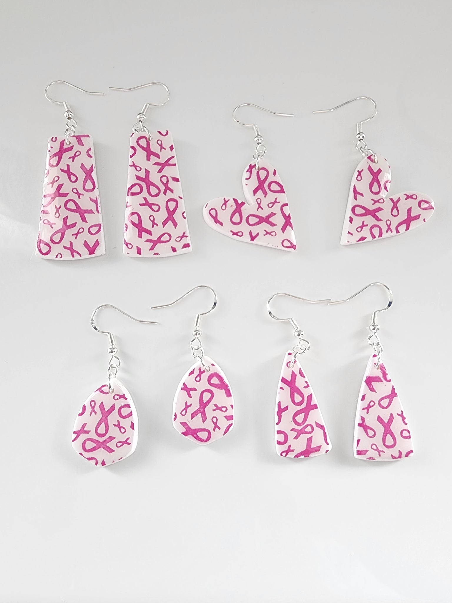 Show your support in style with Jazzed Up Bling’s Pink Ribbon Polymer Clay Earrings. Handmade with love, these earrings feature the iconic breast cancer awareness ribbon in bold pink against a white base. Available in four unique shapes — rectangle, heart, teardrop, and triangle — so you can choose the design that best suits your style.