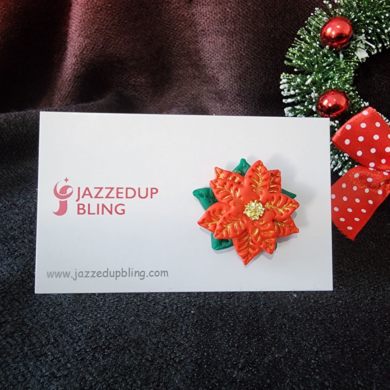 Celebrate the holidays in festive style with our handcrafted polymer clay poinsettia jewelry. Available as statement earrings or a matching brooch, each piece is carefully designed with detailed petals, golden centers, and holiday charm.